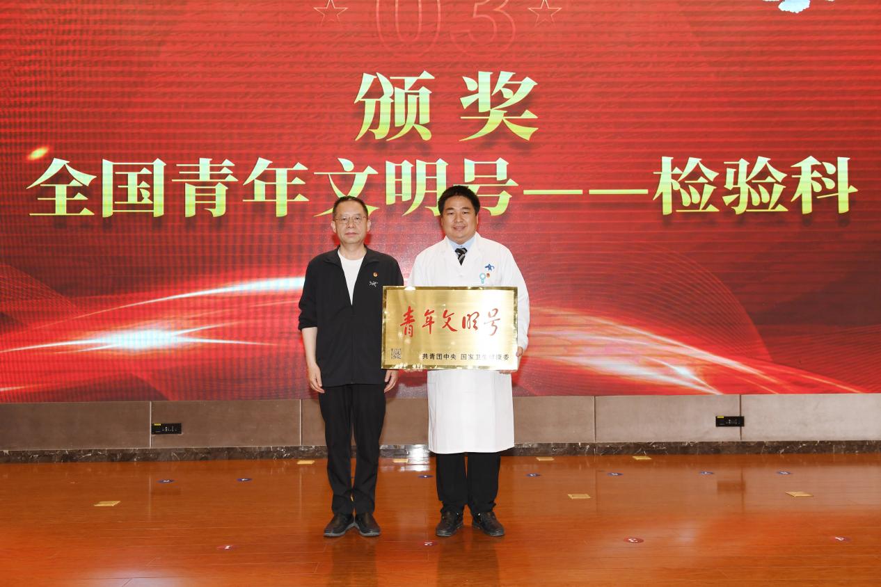随后,优秀青年集体及青年代表进行了交流分享。国家级青年文明号号长、检验科团支部书记张凯歌从弘扬西迁精神助力国家医学中心创建、立足本职工作推动行业发展、关爱青年成长助力青年成才、传递文明价值扩大文明影响四个方面,生动展示了“国号”青年的精神风采。
