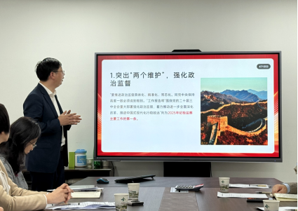 纪委副书记杜岳峰带领全体委员专题学习了二十届中央纪委四次全会精神。他强调,要深刻把握全会关于“强化政治监督”“严的基调”“纪检监察铁军建设”等核心部署,切实把思想和行动统一到党中央决策部署上来,深入贯彻落实医院第四次党代会精神,以更高标准推进医院纪检工作。