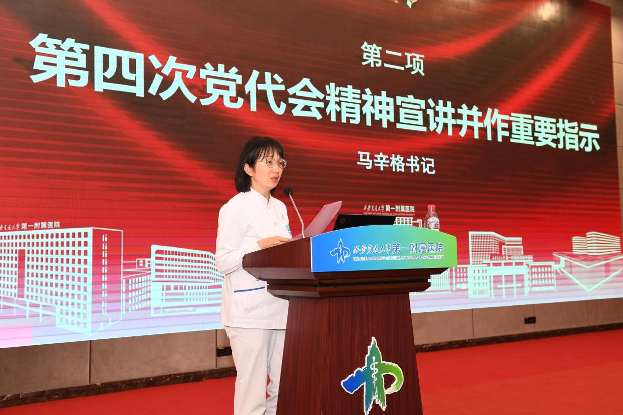 为深入学习贯彻医院第四次党代会精神,推动护理工作高质量发展,11月4日下午,护理部组织在总院区科教楼三层报告厅隆重召开第四次党代会精神宣讲会。会议由我院韩建峰副院长主持,院党委马辛格书记、患者服务中心蒋玉梅主任、宣传部王睿部长、陕西省护理质控中心辛霞主任、护理部李洁琼主任、黎巧玲副主任、温绣蔺副主任、李晨陆副主任以及总院区、陆港院区、东院区全体护士长参加。