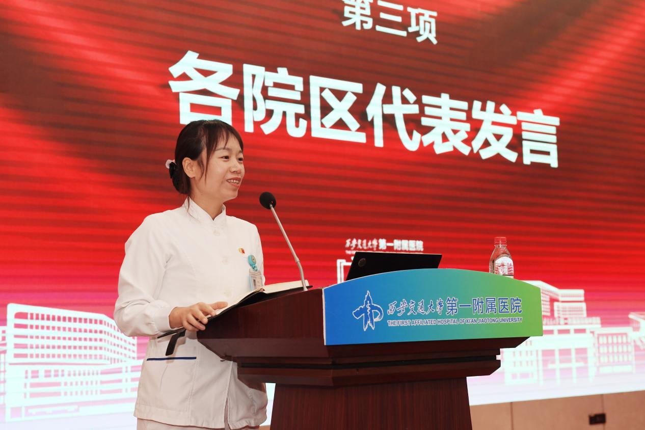 在交流发言环节,由护理部李洁琼主任主持,来自各院区的护理骨干代表依次发言。陆港院区神经内科屈彦总护士长、东院区泌尿外科赵敏慧副护士长、青海院区护理部韩娟总护士长、榆林院区普通外科金鲜珍特聘主任分别结合各自岗位实际,分享了学习党代会精神的体会与下一步工作思路。展现了各院区护理团队团结奋进、锐意进取的精神风貌。