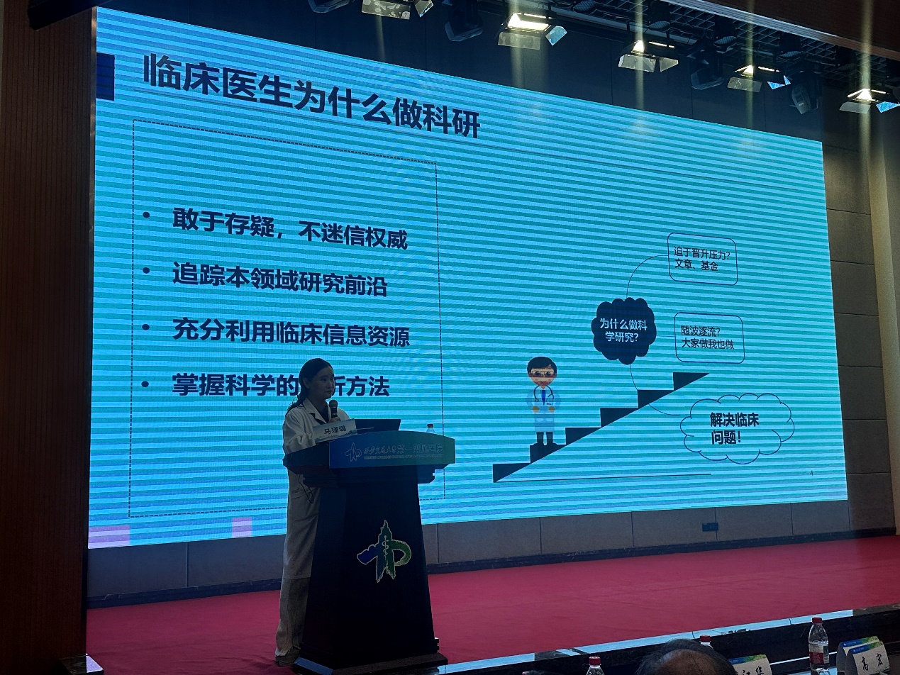 表彰大会结束,为切实提升科研人员项目申报能力,夯实2026年度国家自然科学基金申报工作基础,大会特别增设了学术培训环节。由深根基金申报的资深专家韩苏夏教授及马瑾璐主任医师分别从《如何撰写一份高质量的国家自然科学基金申请书》、《临床医师视角下国自然申请书撰写注意事项》的不同视角带来申报撰写能力提升专题培训。培训会上,韩苏夏副院长结合自身丰富的科研管理经验和评审实践,系统剖析了国家自然科学基金申请的关键要素与常见问题。他从项目选题的科学性、创新性切入,深入讲解了立项依据的凝练、研究内容的规划、技术路线的设计、可行性分析的论证以及前期研究基础的展示等核心环节的撰写要点。同时,他还特别强调了在医工交叉背景下,如何有效整合临床需求与工程技术优势,在申请书中清晰呈现跨学科研究思路与解决重大临床问题的潜力。