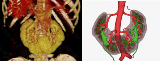 供者马蹄肾CT血管成像(CTA)及三维重建结构图