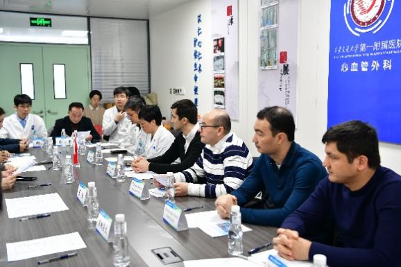 Ikrom主任对我院的热情接待与周密安排表示感谢。他介绍,乌兹别克斯坦国家医疗中心是本国的核心医疗机构,在心脏外科等领域拥有丰富的经验。他表示,此次来访深切感受到了西安交大一附院的卓越技术与开放胸襟。他期待通过此次合作协议的签署,开启两院在临床技术培训、人才交流与联合科研等方面的务实合作新篇章,共同提升医疗服务水平,造福两国人民。