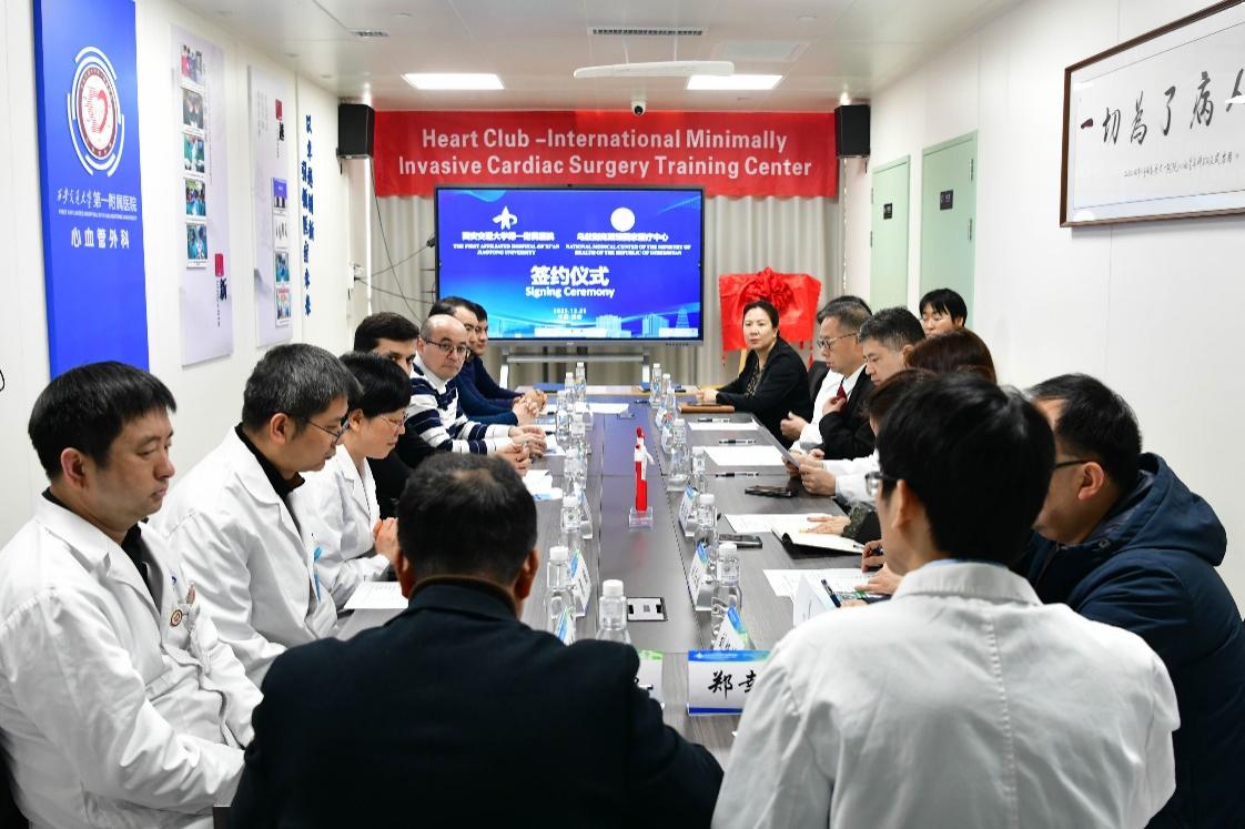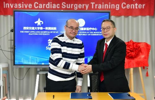 2025年12月25日上午,西安交通大学第一附属医院与乌兹别克斯坦国家医疗中心成功举行合作协议签约仪式。西安交大一附院院长吕毅、乌兹别克斯坦国家医疗中心心脏外科主任Mallayev Ikrom Usmanovich、国际顶尖微创冠脉搭桥专家菊地庆太、西安交大一附院心血管病院副院长、心外科主任闫炀及党院办、医务部、人力资源部、组织统战部、国际交流处、宣传部等部门领导和双方医务人员代表共同出席会议。