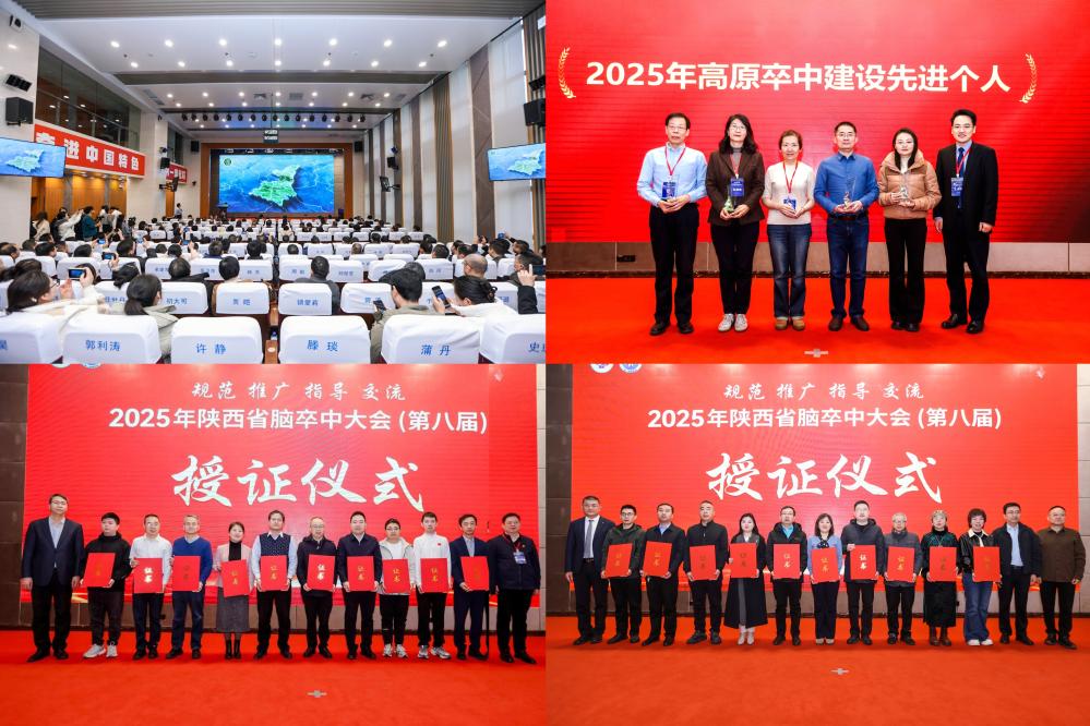 大会发布了陕西省卒中急救地图的第六版,表彰了兰州大学第一医院谷有全教授,青海省人民医院侯倩教授、吉维忠教授,新疆维吾尔自治区人民医院李红燕教授,西安交通大学第一附属医院屈秋民教授,西藏自治区人民医院仁增教授,内蒙古自治区人民医院朱润秀教授,昆明医科大学第二附属医院朱榆红教授,四川大学华西医院张阳教授等9位为“2025年高原卒中中心建设先进个人”,并对2025年三级、二级卒中中心20家单位代表进行了授证。