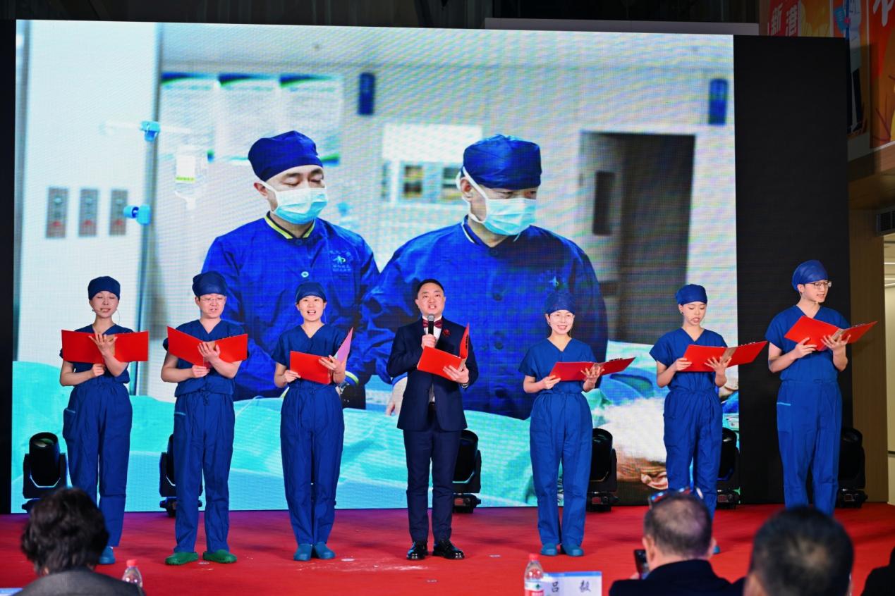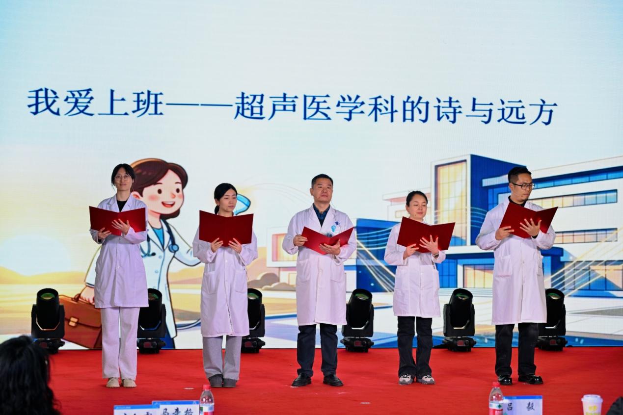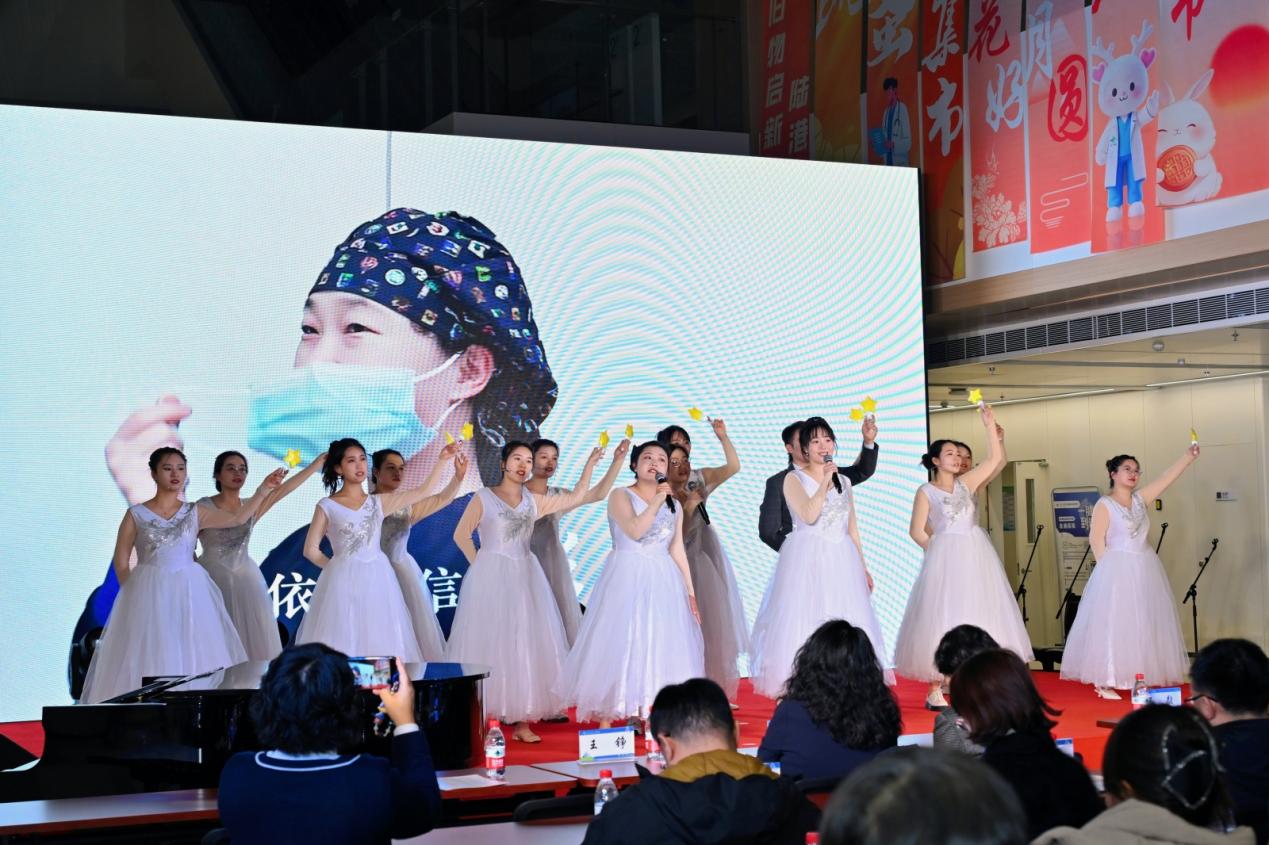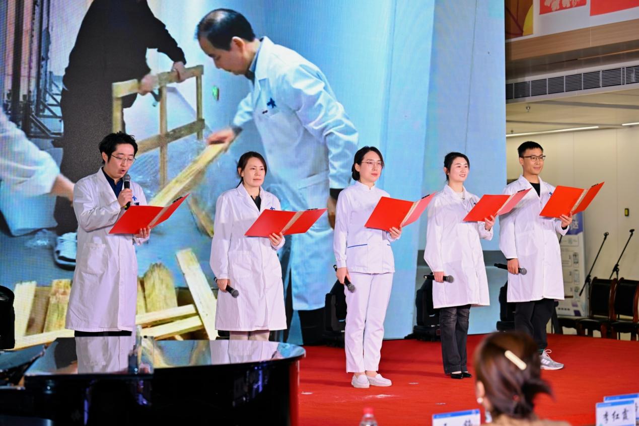 随后,院领导、中层干部及相关科室代表组成的合唱方阵,以一曲气势磅礴的《光辉岁月》点燃全场。当熟悉的旋律响起,台上台下掌声雷动,歌声中既有对过往奋斗的致敬,更饱含着对未来的无限期许,瞬间将现场气氛推向高潮。