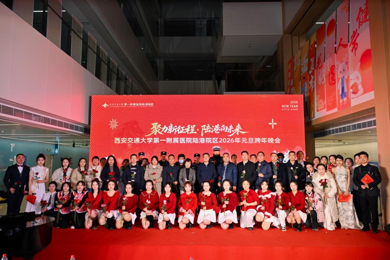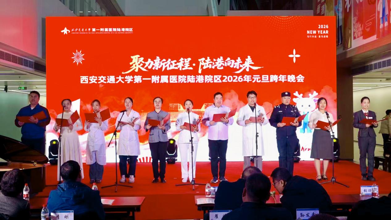 12月30日,值此陆港院区开诊一年之际,陆港院区举办了以“聚力新征程·陆港向未来”为主题的2026年元旦跨年晚会。我院院长吕毅、党委书记马辛格、党委副书记冯广林、副院长张谞丰、一级组织员韩菊、院长助理王铮、陆港院区副院长李红霞等院领导班子成员出席晚会。同时,华润置地代建北方区域副总经理孙发鑫、北方区域市拓部负责人林楠均、北方区域陆港医院项目负责人李涛,中国十七冶集团交大一附院陆港医院项目经理徐小钦,新合社区卫生服务中心党支部书记、中心主任王宝记,新筑社区卫生服务中心党支部纪检委员韩卓,新合街道漕渠路社区书记孟阳等合作单位与属地代表亦受邀莅临,共襄盛举。