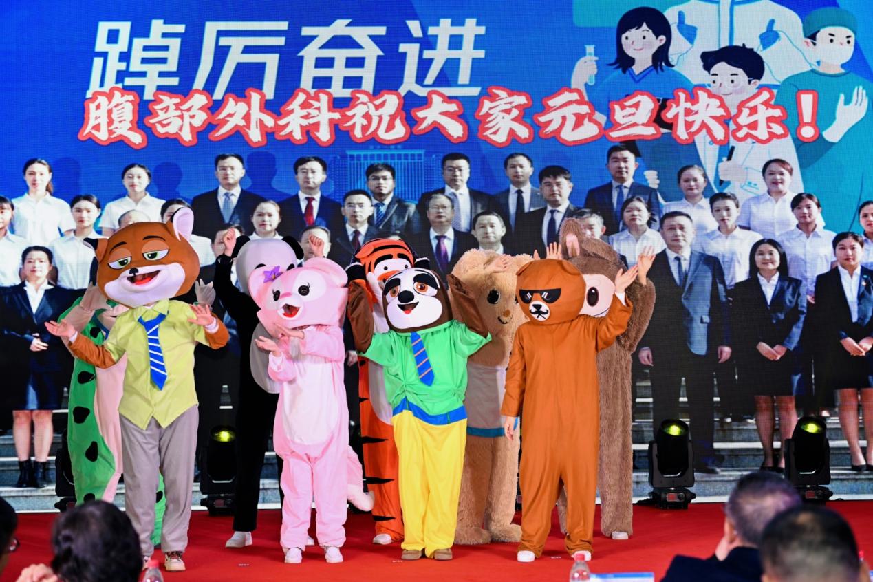 节目中,既有贴近医护日常的原创小品—神经内科带来的《我爱上班》,以幽默笔触勾勒医护人员在忙碌工作中的乐观与坚守,生殖医学科的《生殖科风云》则用诙谐桥段展现医者在辅助生殖领域的专业与温情;也有活力四射的集体舞—腹部外科演绎的《疯狂动物城的欢乐》,以灵动舞姿传递青春朝气,血管外科的《第一天》、呼吸与危重症医学科、胸外科联合呈现的《春满家园》、肿瘤放疗科的《舞蹈串烧》和妇产科的《新年快乐》,用每一个动作展现生命的希望与温暖和对新年的美好祝福;这些节目将医疗场景与艺术创意巧妙融合,让观众在欢笑与感动中,深切感受到医护人员严谨工作之外的鲜活与可爱。