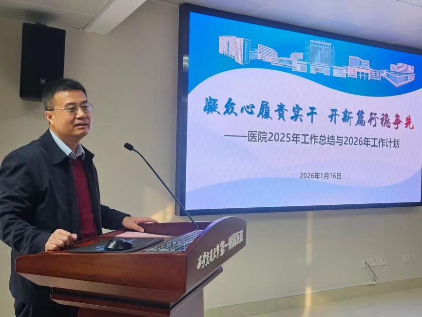 党委书记马辛格作总结性发言,他表示,老同志们的发言充分体现了老一辈一附院人爱院敬业的情怀,他感慨,过去的2025年既是精彩的一年,科技成果转化和国科金的大幅度提升,陆港院区的运行走在全国新建医院的前列,各项医疗指标持续向好,使我们和头部医院在创新的角度上差距越来越小,取得了很好的成绩。但医院的发展也面临一些困难,DRG付费改革、医疗价格调整等给医院带来了运行压力,考验着医院领导班子的智慧。他讲到,2026年医院将在十四五“七年答卷”的基础上,对十五五开局进行谋划,把医疗技术水平创新和专家资源用到每个患者身上,把医疗质量和安全、国科金、人才培养、学科建设、教学成果等提到更高的层次,把国家医学中心建设好,期带着离退休老同志为医院发展做出更大的贡献。