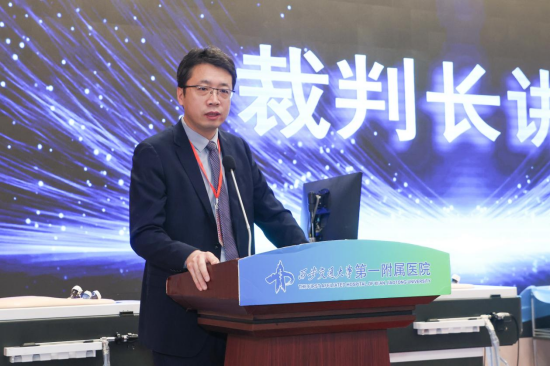 随后,大赛裁判长、山东大学齐鲁医院临床技能培训中心主任展翰翔教授代表全体裁判庄严表态。他承诺,将严格恪守“公平、公正、公开”原则,从操作规范性、技术精准度、应急处理能力等核心维度量化评审,既保证赛事权威性,也将以专业视角为选手提供成长反馈。同时,他寄语青年医师在比拼中取长补短,在精进技艺中践行医者使命。