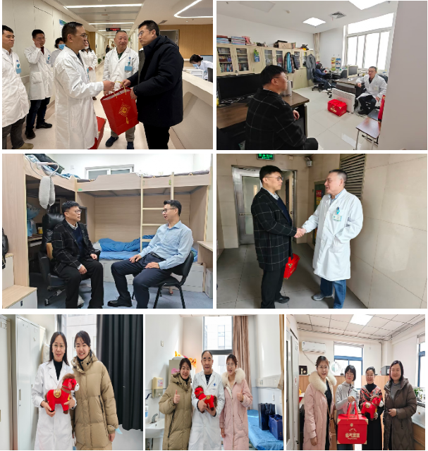 慰问组还到门诊和病房慰问了援青第25批博士服务团妇产科韩晓兵、眼科崔丽珺,组团式帮扶山阳县人民医院杨益民,与第九、十批乡村振兴扶贫工作队网络信息部刘昊、秦润公司尉育铭,医疗保险管理办公室张剑昆、秦润公司张策进行座谈,深入了解大家在一线的实际状况与需求,送上新春问候,激发了大家立足岗位、服务大局的热情。此外院党委也为40名困难党员发放了慰问品并送去了节日祝福。
