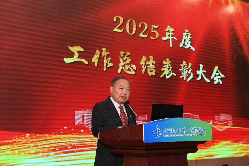 2月9日下午,西安交通大学第一附属医院2025年终工作总结表彰大会顺利召开。西安交通大学医学部常务副主任雷利利、医院领导班子成员、院长助理、两委委员、离退休职工代表、全体中层干部及获奖科室、个人代表出席会议,会议由医院副院长韩苏夏主持。