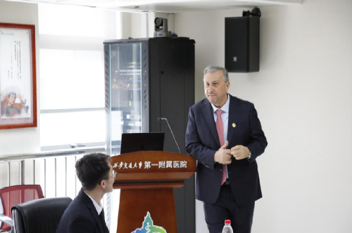 4 月 6 日上午,磁控微型医疗机器人领域国际顶尖学者、美国国家工程院院士、欧洲科学院院士、土耳其科奇大学校长 Metin Sitti 教授应邀到访西安交通大学第一附属医院,围绕磁控微型医疗机器人前沿技术与临床转化开展学术交流。第一附属医院院长吕毅教授,西安交通大学机械学院吕建教授、物理学院韩捷助理教授,一附院心血管外科王京玉主任医师、康复医学科敦旺欢副研究员、陕西省磁医学重点实验室副主任董鼎辉副研究员、精准外科与再生医学国家地方联合工程研究中心副主任马锋、科技部成果转化中心副主任王德普及部分外科梦工场师生参会。会议由一附院科技部副部长兼成果转化中心主任吴荣谦教授主持。