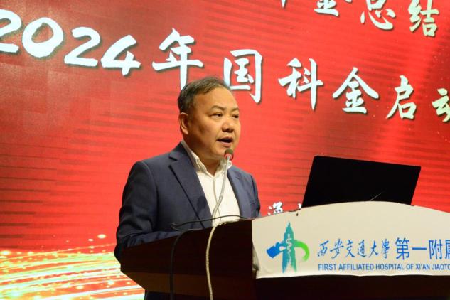为进一步提升医院科研水准,持续推动医院高质量发展,冲击国家医学中心建设任务目标,9月25日,交大一附院召开2023年国科金总结表彰暨2024年国科金动员部署会。西安交通大学科研院常务副院长邵金友、副院长刘永忠,西安交通大学医学部副主任、科技处处长马现仓,医院党委书记马辛格及院领导班子成员参加会议。会议由一附院副院长韩苏夏主持。