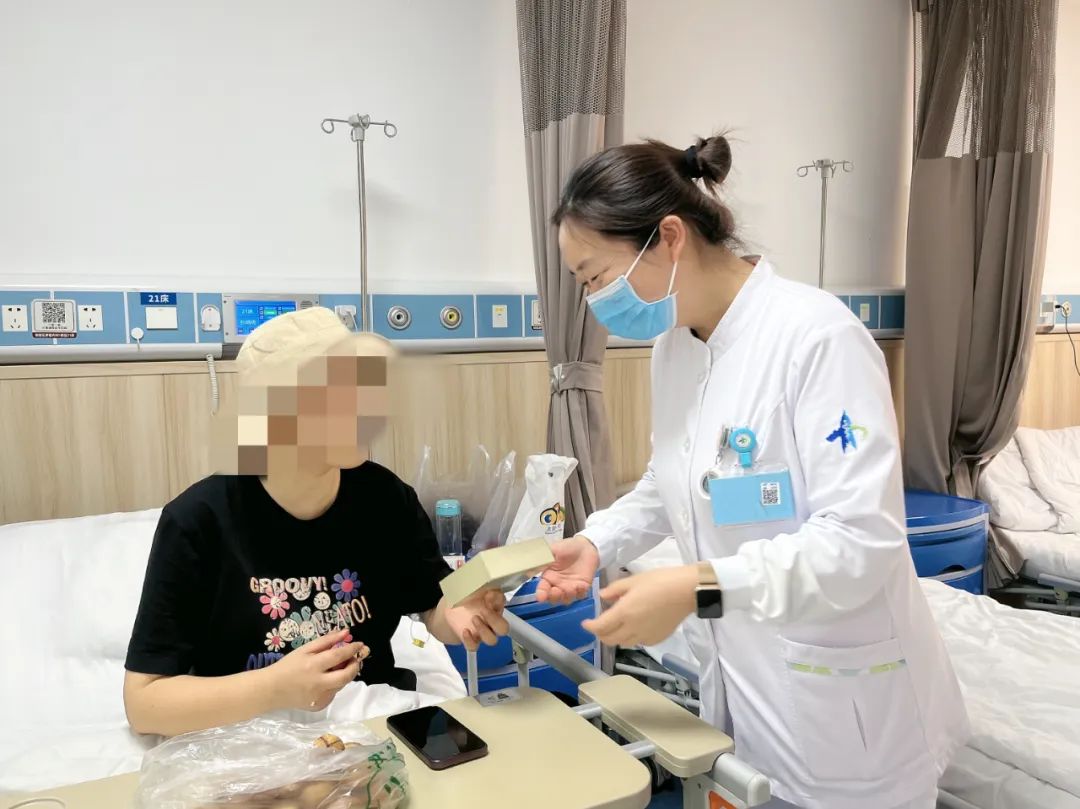为了让住院患者感受到节日的气氛和医院的关怀,肿瘤内科为住院患者送月饼,同时也送上节日的祝福:祝愿他们早日康复,阖家团圆。万家团圆是最温暖的色彩,节假日的值守不仅是对患者健康的守护,更是给一个个家庭带来了别样的希望。