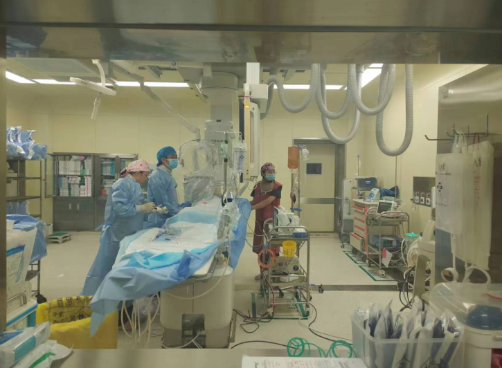 凌晨三点,东院区胸痛联络群里消息不断。“患者胸闷胸痛大汗1小时!病人马上到!”“急诊准备!”“介入准备!”紧张有序的救治并没有因为假日和深夜而有丝毫懈怠。胸痛中心的医护人员默默坚守在工作岗位上,随时为急性胸痛患者的救治提供保障。患者来院急查心电图,考虑急性心肌梗死,心内吕小琴住院总医师立即会诊,诊断急性下壁心肌梗死,与病人及家属沟通后同意急诊介入手术,一键启动介入室,由曾新春副主任医师、刘馨玉主治医师、任梅护师共同配合,手术进行顺利,20分钟后,手术结束,患者生命体征平稳,大家紧张的心情放松下来。秋季是心血管疾病高发季节,进入假期,胸痛中心已连续接诊多例急性心梗,患者均得到迅速有效的救治。