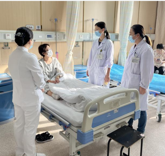 病房里,患者在病房不仅有电动起立床治疗的康复支持,更有医护人员的温情陪伴。平凡的护理工作中,做好每日交接班,床旁仔细查看每一个患者,无论假期或日常,守护患者的安全就是我们的责任。
